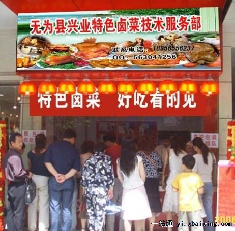 芜湖兴业老牌卤菜,重视卤水配料选择,每项细节到位,从原材料选配,由初加工的做法到深加工销售,都按规范操作,诚信机构,全方位过程,持久性保障服务,各种卤水有:红卤水|白卤水|黄卤水|酱卤水|熏卤水|烤制|蒸制|清真卤|糟卤|凉拌|油炸以及老卤|卤汤|老汤制作和保管在线咨询。1★8★9★5★6★5★5★6★2★3★7. ,,,,们深知创业者资金来之不易。更清楚创业者迫切而谨慎的投资心情;但是若优柔寡断,裹足不前,坐失良机就永远没有成功的机会;,千里之行。始于足下;选择一个好项目是成功的第一步;民以食为天。投资吃的行业。市场永不饱和;抓住商机不要错过。就一定能成功;生而贫穷并无过错。死而贫穷才留遗憾;凭借咱们成功的经验与成熟可靠技术。愿以百倍的热情和您一道努力。帮您改变命运。成就未来; 美食小吃|引领财富滚滚来|陈氏卤肉店|遍地开花|赚钱无忧。以“健康美味|双赢共存”为企业口号|创时代精神和不懈努力|精心打造陈氏品牌。无为陈氏卤肉经过对传统卤菜工艺的精心研究|做出最完美的卤味调料。让人们吃出健康|同时还可以想吃就吃。 加盟云南烤鸭技术 市场占有率高,不仅肉质鲜美,皮脆肉嫩,口感有回味魅力,吃了还想吃!香难忘,推向市场以来,深受吃货们情迷,目前以我们的经验配方和工艺。现无人可比。 复杂以中药香辛料为主,特色烤鸭技术调味料为辅,使清香扑鼻-味道鲜美-色泽鲜明-油而不腻,让你久久难以忘怀。 ,,,,安徽卤菜真正做得好的。应该属于无为卤菜。陈氏卤制品是无为的优秀企业。陈氏卤菜的卤菜特别讲究入味与色调。既漂亮又好吃。陈氏卤制品对全国各大品牌卤菜的制作颇有研究。在此愿公开秘方让大家都能够吃上自己亲手做出来的卤菜。配置卤汁的原料:卤药:欲想卤出香喷喷的卤菜。卤药是特别关键的一环。 ,,,卤菜这行当然有高峰期的,冬天是没有什么生意的,从3月份开慢慢开始好起来,高峰期是学生暑假,一直到11月都是比较好的,后面的就是混混日子了,混混日子也比你打工强,其中的利益还不错,如果你找到人流量比较多的市场,当地人比较舍得吃,这些需要你自己花时间蹲点,如果里面有很多同行不是问题,你只急着,店摆放的比较显眼,手艺好,店装修的时候,一定要用霓虹灯,来做店名., ,,,,联系客服。+扣扣5.6.3.0.4.1.2.5.6.,地址:安徽芜湖市无为无城镇城北社区花园08#,陈氏卤菜企业。86-0553-63-66-832。